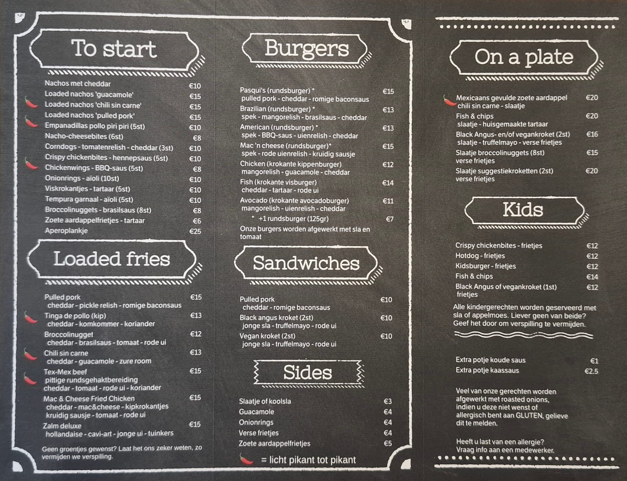 Op de markt van Marke, onder de kerktoren, vindt je onze streetfoodbar terug. Een uniek concept in de regio, waar je gezellig kunt komen lunchen of dineren, van apero tot dessert of enkel genieten van een cocktail met diverse hapjes. Onze streetfood is voornamelijk Amerikaans getint, met bijvoorbeeld loaded fries, loaded hotdogs en heerlijke burgers. Daarnaast bieden we ook een klein deel streetfood aan uit andere landen. Ook aan de toekomst is gedacht met verschillende kindergerechten en een leuke speelhoek naast het restaurantgedeelte, zodat uw kroost volop kan spelen, kleuren of lezen zonder andere gasten te storen en toch dicht bij mama en papa zijn.